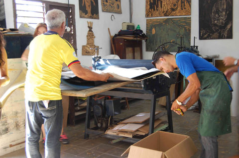 Members of the Jury of the II National Collography Contest together with members of the Estate of Belkis Ayón and La Sociedad Gráfica de Cienfuegos. Cienfuegos, 2015.