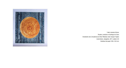 All Cuban students and artists with engravings made in the COLLOGRAPHY technique, printed between 2014 and 2015, who have not participated in a previous exhibition, event, or contest, may participate.